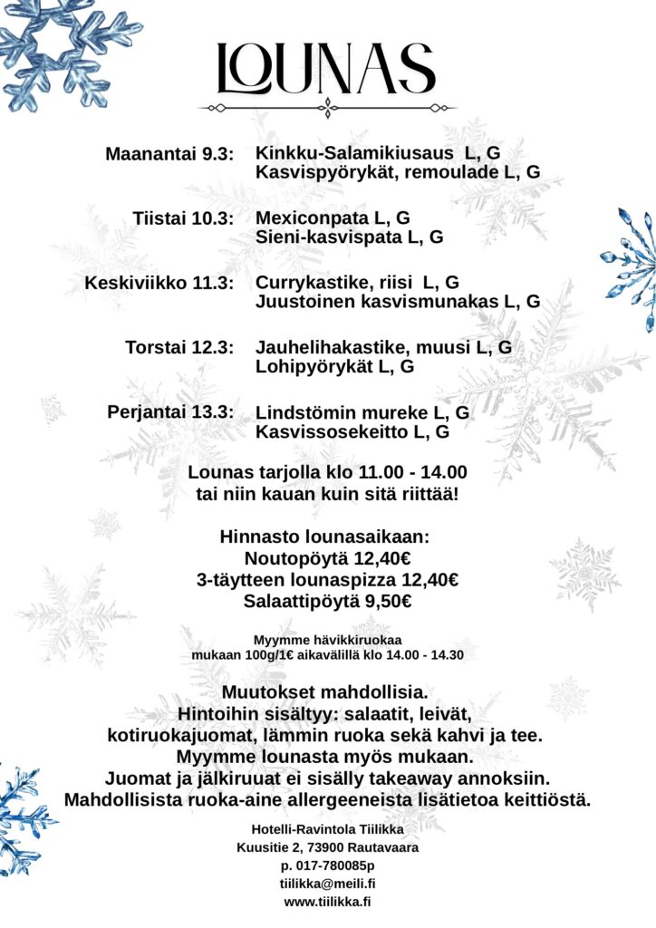 Huom. 9,50€ hintaisesta lounaasta ei leimaa lounaspassiin.